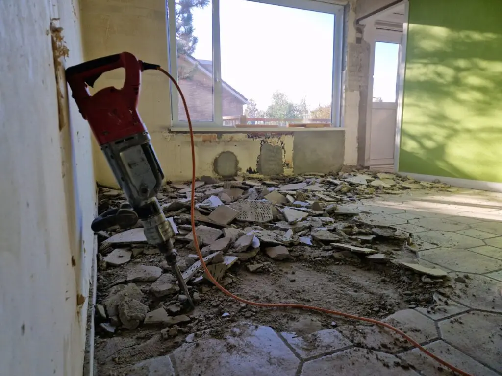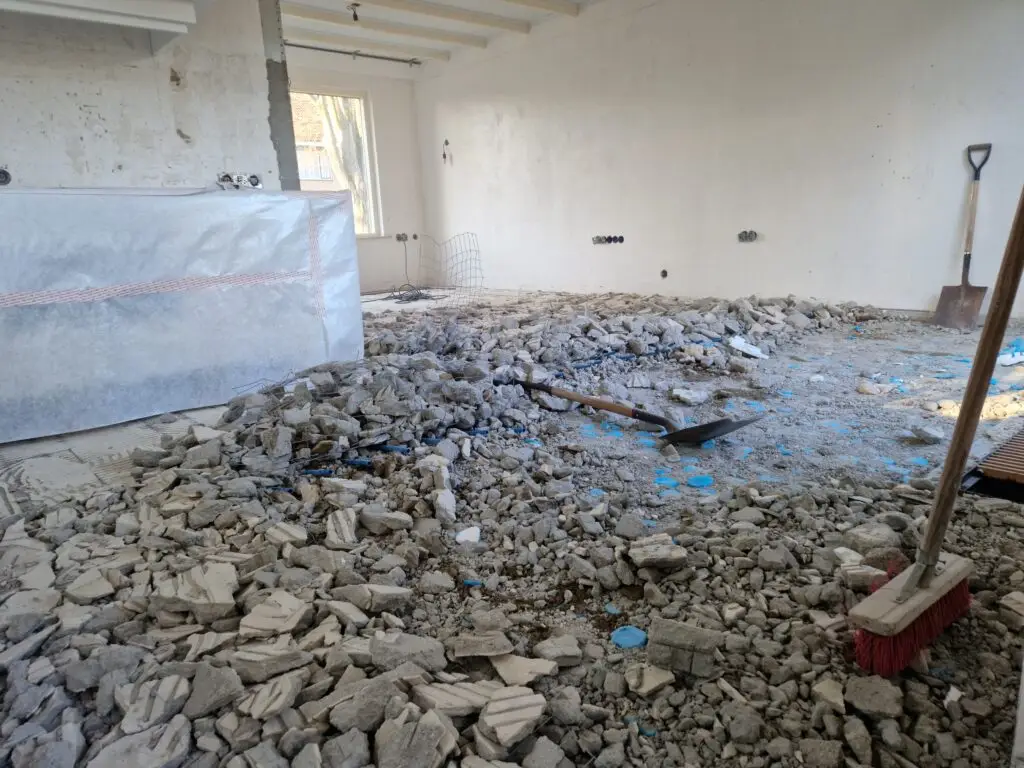 Bij het verwijderen van een cementdekvloer ontstaat veel puin, dus de afvoer daarvan is een essentieel projectonderdeel. We transporteren het vloermateriaal in puinzakken of gemakkelijk verplaatsbare minicontainers die ook door smalle doorgangen kunnen. Tevoren bespreken we met u waar het puin naartoe gebracht zal worden. Desgewenst zorgen we dat er een geschikte puincontainer gereed staat, waarmee de vloerresten overeenkomstig de bestaande regelgeving verder kunnen worden afgevoerd. Niet alleen wordt al het losgemaakte vloermateriaal door ons afgevoerd, ook maken we de ruimte keurig schoon. De vloer wordt bezemschoon opgeleverd, zodat in principe meteen kan worden begonnen met bijvoorbeeld het installeren van vloerverwarming of het aanbrengen van een nieuwe dekvloer.